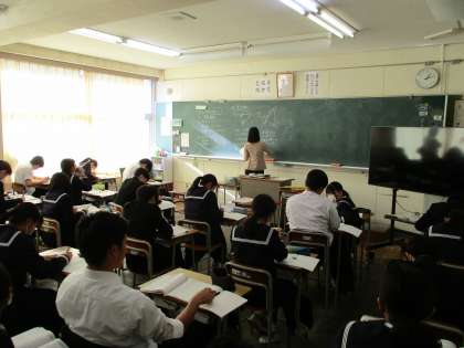 3年生の授業の様子を紹介します。 【写真上:数学】 【写真中:数学】 【写真下:英語】