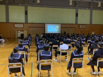 13日(水) 学びの様子【2学年】 公開日 2023/12/13 更新日 2023/12/13 2学年 5限に行った2年生の学年集会の様子です。 総合的な学習の時間に取り組んでいる「進路学習」の一環として、来年度の進路選択に向けて、学年主任から丁寧に説明しました。