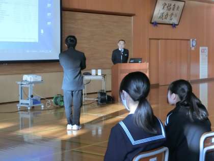 学校医の先生から、中学生期における歯みがきの習慣づくりと歯みがき技術の向上を目指して講演していただきました。大切な歯の健康に役立てていきましょう。