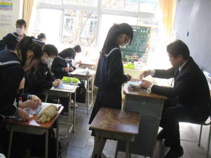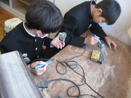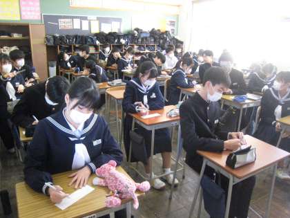 2年生の授業の様子を紹介します。 【写真上:学活】 【写真中:理科】 【写真下:技術】