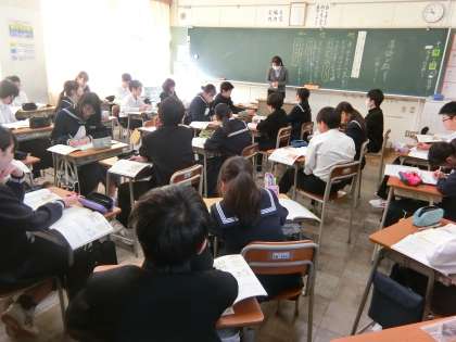 1年生の授業の様子を紹介します。 【写真上:家庭科】 【写真中:道徳】 【写真下:英語】