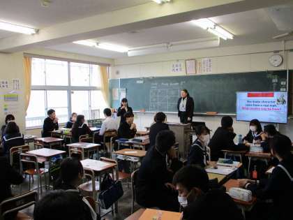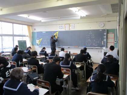 3年生の授業の様子を紹介します。 【写真上:英語】 【写真中:数学】 【写真下:社会】