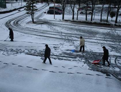 昨日からの雪で、今朝は積雪があり、今年度初の除雪作業となりました。