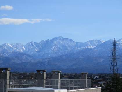 写真は、幻想的な日の出や冬晴れの午前における立山連峰の姿です。