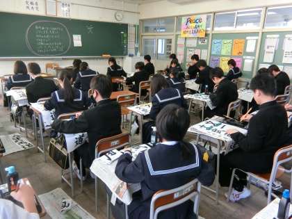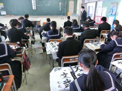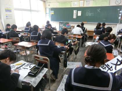 1年生の書き初め大会の様子です。 【写真上:11H】 【写真中:12H】 【写真下:13H】