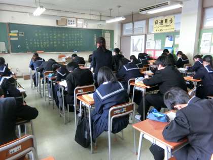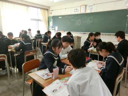 1年生の学びの様子を紹介します。 【写真上:国語(書写)】 【写真中:家庭科】 【写真下:英語】