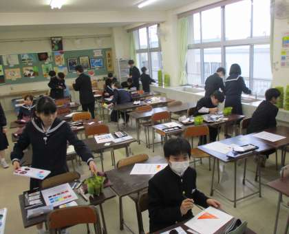 1年生の授業の様子を紹介します。 【写真上:技術】 【写真中:家庭科】 【写真下:美術】
