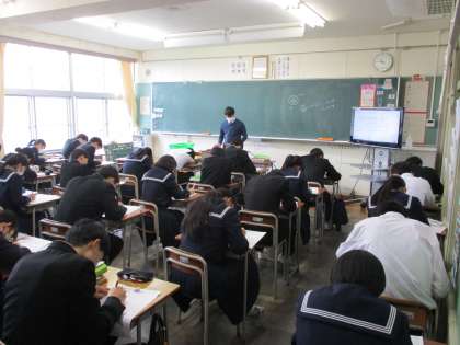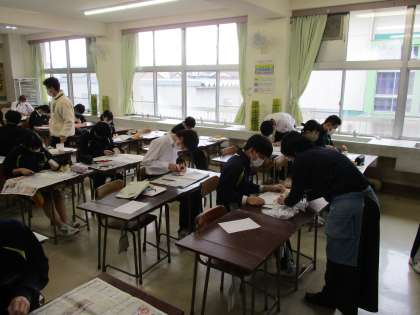 3年生の授業の様子を紹介します。 【写真上:理科】 【写真中:数学】 【写真下:美術】