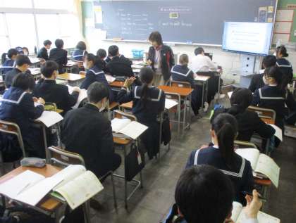 2年生の授業の様子を紹介します。 【写真上:英語】 【写真下:理科】