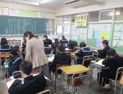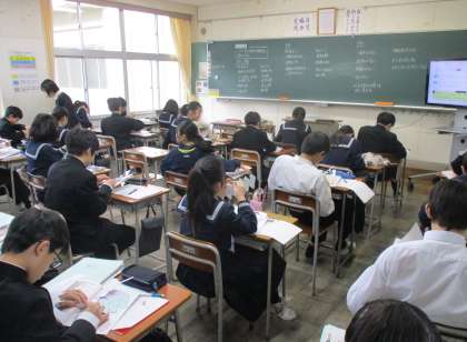 1年生の授業の様子を紹介します。 【写真上:国語】 【写真中:数学】 【写真下:国語】