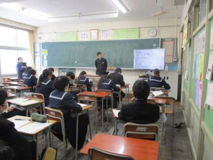 24日(水)職業調べ発表会【1学年】 公開日 2024/01/24 更新日 2024/01/24 1学年 本日5・6限に「身近な人の職業調べ」発表会を行いました。冬休み中に調べた興味のある仕事について、一人一人がスライドを使って、プレゼンをしました。発表者以外の人も、友達の発表をメモをとりながら熱心に聞いていました。