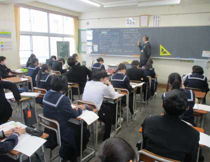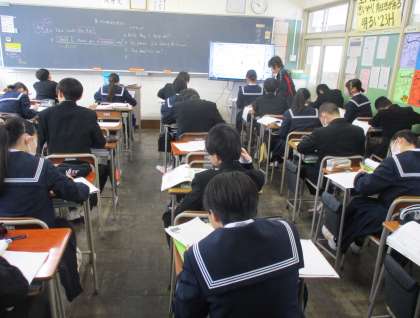 2年生の授業の様子を紹介します。 【写真上:保健体育】 【写真中:英語】 【写真下:数学】