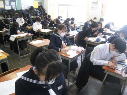 2年生の授業の様子を紹介します。 【写真上:数学】 【写真中:理科】 【写真下:社会】