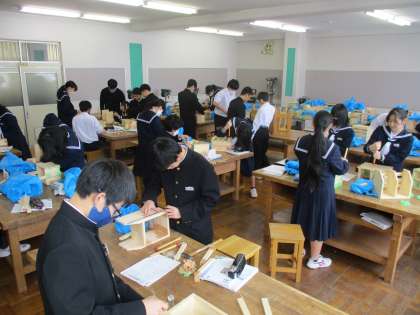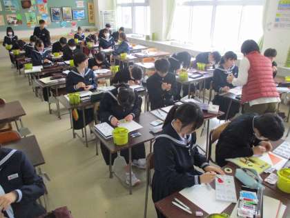 1年生の授業の様子を紹介します。 【写真上:美術】 【写真中:技術】 【写真下:数学】