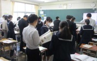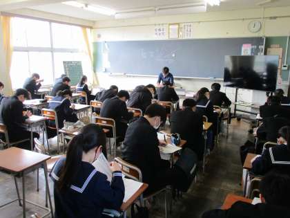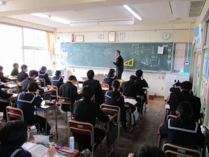 3年生の授業の様子を紹介します。 【写真上:保健体育】 【写真中:理科】 【写真下:数学】