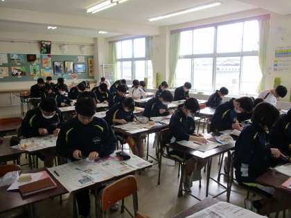 3年生の授業の様子を紹介します。 【写真上:理科】 【写真中:数学】 【写真下:美術】