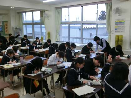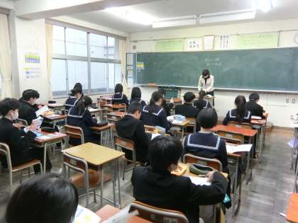 1年生の授業の様子を紹介します。 【写真上:保健体育】 【写真中:美術】 【写真下:国語】
