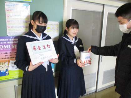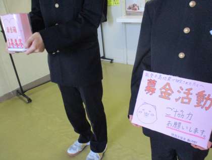 8日(木) 能登半島地震復興支援活動【生徒会執行部】 公開日 2024/02/08 更新日 2024/02/08 生徒会 今週月曜から始めた能登半島地震の復興支援募金も、明日が最終日です。 1日も早い復興に向け、皆さんのご協力をお願いします。
