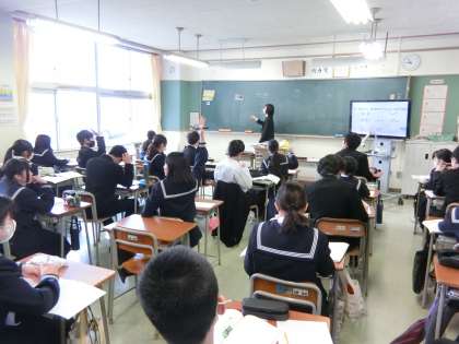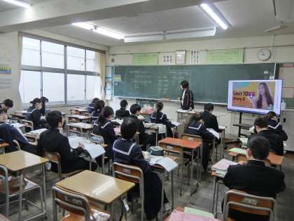 1年生の授業の様子を紹介します。 【写真上:数学】 【写真中:保健体育】 【写真下:英語】
