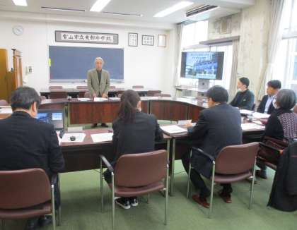 本日、「地域とともにある学校」であるコミュニティ・スクールを築くための学校運営協議会を開催しました。今年度の最終となる今回は、授業参観の後、1年間の教育活動の見直しと次年度に向けた方策について、地域を代表する委員の方々と協議を行いました。