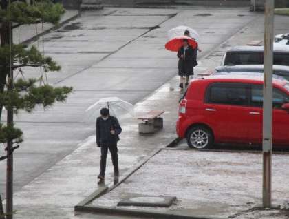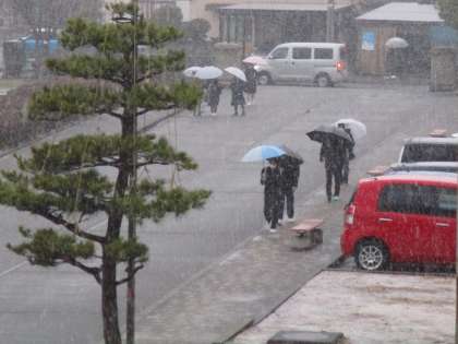 下校時間の直前にも、にわかに大粒のあられが降って辺り一面が白くなり、思わず驚きの声が上がりました。