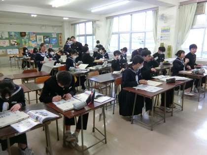 1年生の授業の様子を紹介します。 【写真上:美術】 【写真中:英語】 【写真下:技術】