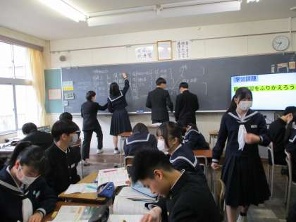 2年生の授業の様子を紹介します。 【写真上:社会】 【写真中:保健体育】 【写真下:家庭科】