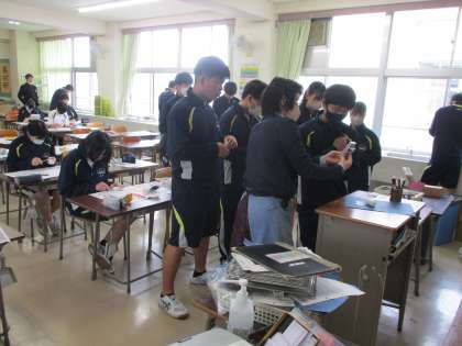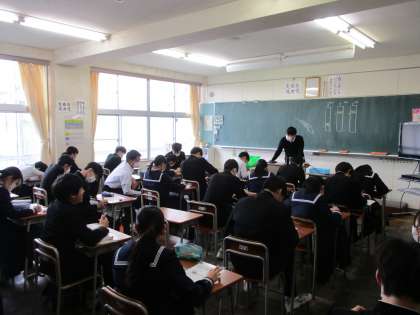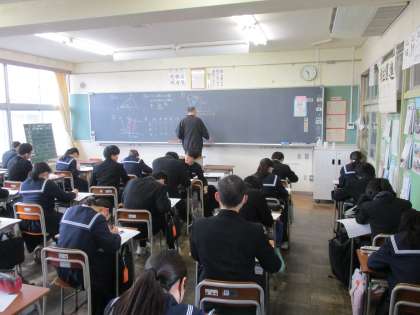 3年生の授業の様子を紹介します。 【写真上:理科】 【写真中:数学】 【写真下:美術】