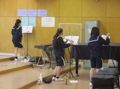 放課後の部活動の様子を紹介します。 【写真上:吹奏楽部】 【写真下:陸上競技部】
