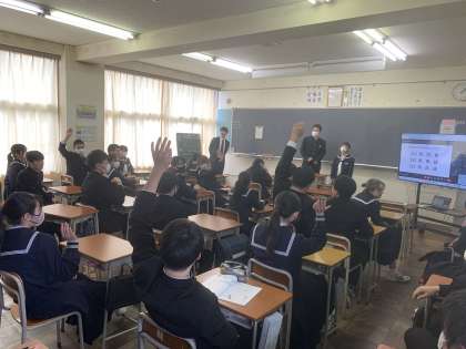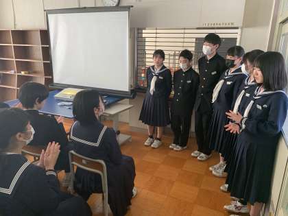 11日(月) 卒業生送る会【生徒会執行部】 公開日 2024/03/11 更新日 2024/03/11 生徒会 本日5・6限目に生徒会執行部主催の「卒業生を送る会」を実施しました。 東部中学校や職員にまつわるクイズ大会や卒業生の3年間の思い出が詰まったスライドショー等、盛りだくさんの企画でとても楽しい時間を過ごすことができました。