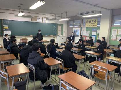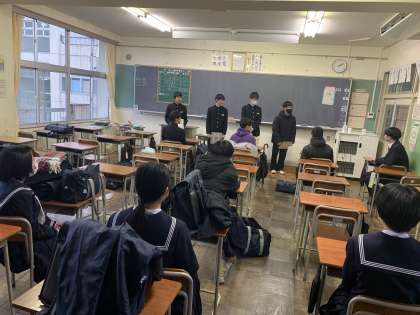 12日(火) 部活動ミーティング その1 公開日 2024/03/12 更新日 2024/03/12 部活動の様子 本日、3学年揃っての最後の部活動ミーティングを行いました。 在校生から卒業生に向けて、素敵なプレゼントを渡したり、卒業生から在校生に向けたメッセージを送ったりしました。 【写真上:卓球部】 【写真中:水泳部】 【写真下:剣道部】