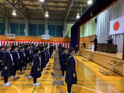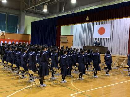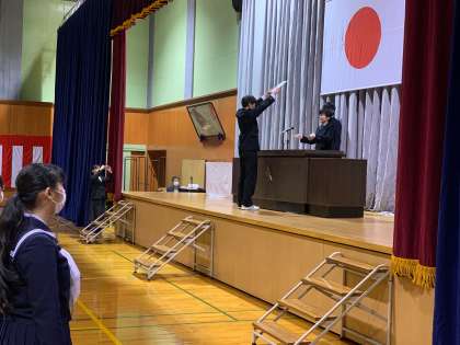 生徒会卒業記念品授与式に引き続き、3学年の修了証授与式が行われました。