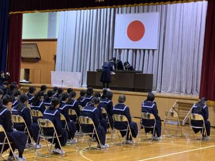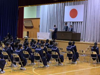 2限には1・2年生も加わり、生徒会卒業記念品授与式が行われました。