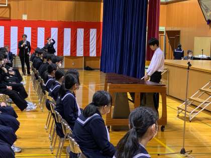 県中学校文化連盟に表彰された吹奏楽部の2名は、表彰後に実際の演奏も披露しました。