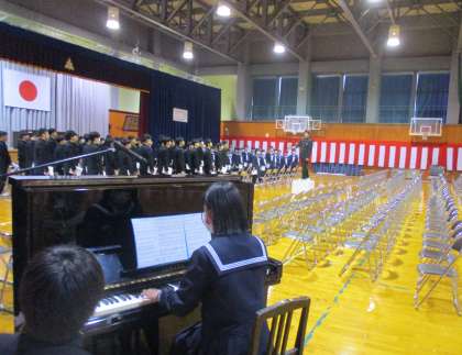 午前中はいくつもの式の後、卒業証書授与式の予行を行いました。