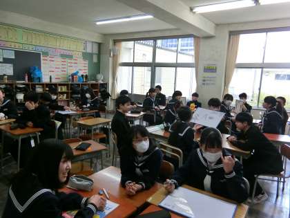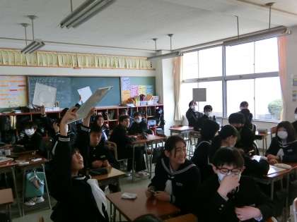 19日(火) 学年レクリエーション【1学年】 公開日 2024/03/19 更新日 2024/03/19 1学年 本日3限に、1年生は学年生徒会が企画・運営をした学年レクリエーション(クイズ大会)を行いました。 各教室にMeetで配信し、楽しい時間を過ごすことができました。