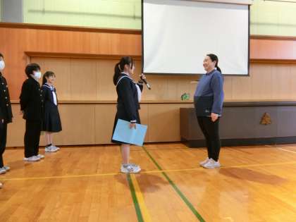 最後に、1年間お世話になった先生方に、各学級からお手紙をプレゼントしました。