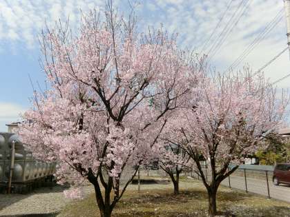 自転車置き場近くの桜が満開になりました。 始業式や入学式でぜひ見てください。