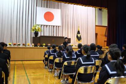 3年生の代表生徒が、歓迎の言葉を話しました。