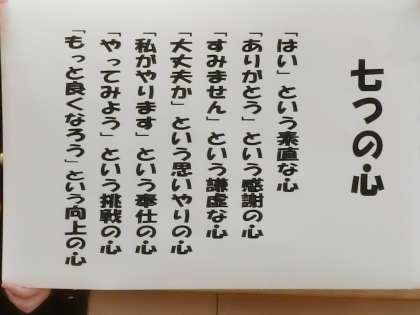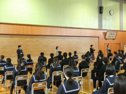 【写真上:学年所属教員】 【写真中:教員の話】 【写真下:七つの心】