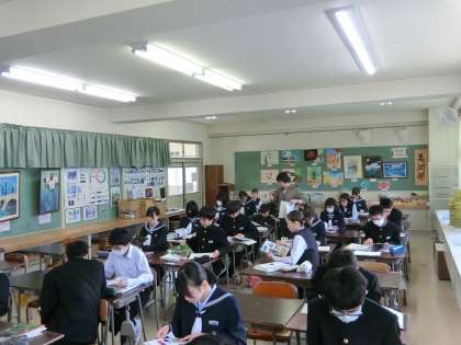 2年生の授業の様子を紹介します。 【写真上:美術】 【写真中:数学】 【写真下:社会】