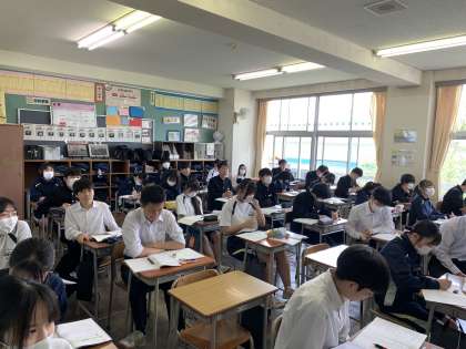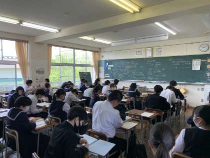 3年生の授業の様子を紹介します。 【写真上:保健体育】 【写真中:数学】 【写真下:社会】
