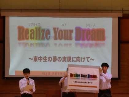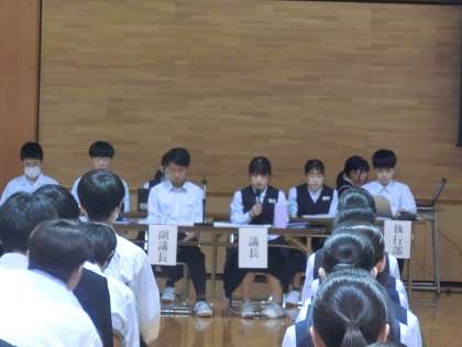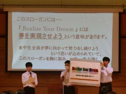 【写真上:スローガンの発表1】 【写真中:スローガンの発表2】 【写真下:議事進行の様子】