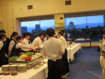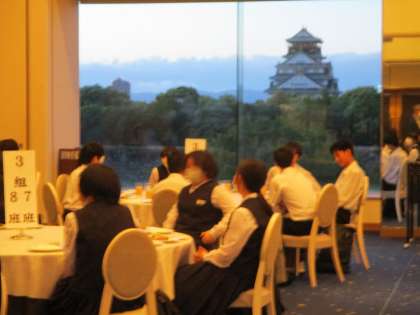 大阪城が見える会場で夕食(ハーフビュッフェ)です。