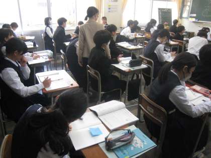 1年生の授業の様子を紹介します。 【写真上】:数学 【写真中】:英語 【写真下】:数学
