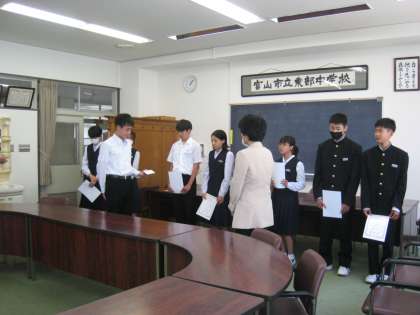 昼休みに、サイクル安全リーダー委嘱式を行いました。
