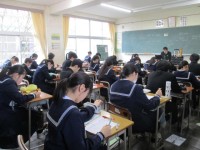 2年生の授業の様子を紹介します。 【写真上:社会】 【写真中:数学】 【写真下:英語】