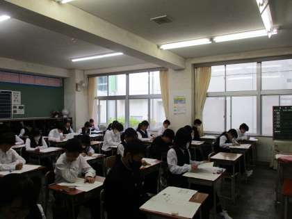1年生は、初めての定期考査に真剣に取り組んでいました。