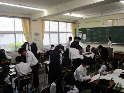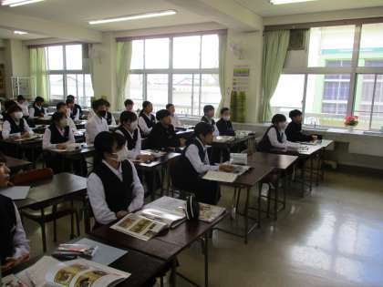 1年生の授業の様子を紹介します。 【写真上】:音楽 【写真中】:美術 【写真下】:数学