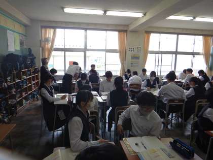 3年生の授業の様子を紹介します。 【写真上:国語】 【写真中:英語】 【写真中:社会】